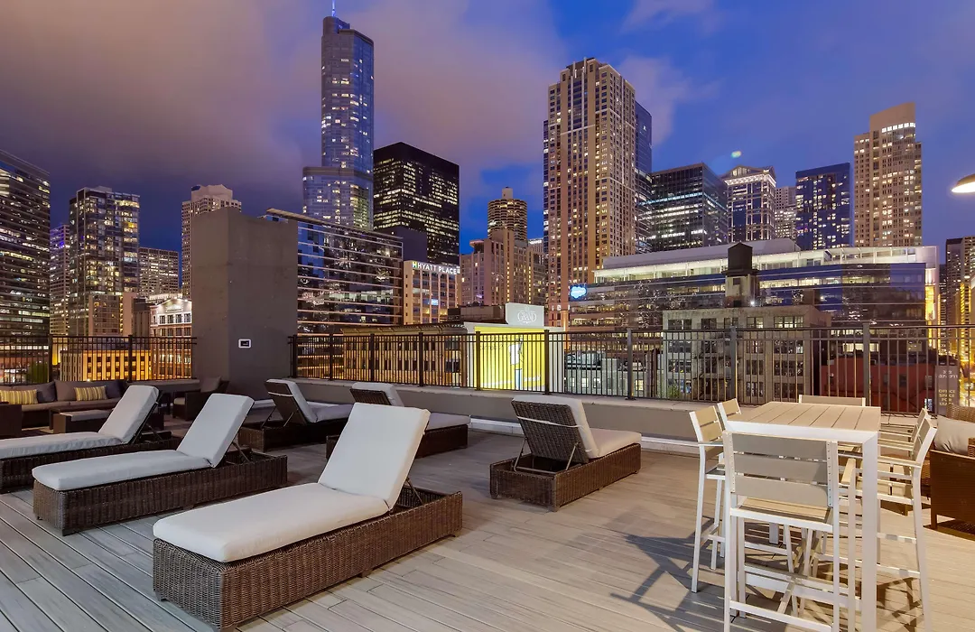 توجد 150 غرفة في مكان الإقامة في شيكاغو وتحتوي كل غرفة على مرافق لكي الملابس والمكواة واللوح الكيّ ومكيف الهواء بالإضافة إلى وسائل الترفيه مثل تلفاز شاشة مسطحة مع قنوات فضائية والتلفزيون. تشتمل وسائل الراحة في الحمام على مجفف الشعر وملاءات الحمام بالإضافة إلى الضروريات مثل المرحاض المنفصل والدوش.